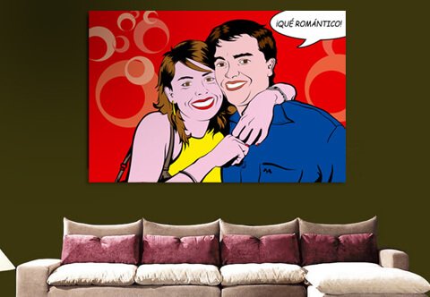 Retratos pop art personalizados individuales o en parejas siguiendo el estilo del genial artista y creativo Roy Lichtenstein. Mándanos tus fotos favoritas, elige el tamaño y en muy poco tiempo tendrás un auténtico retrato Lich en tu poder.