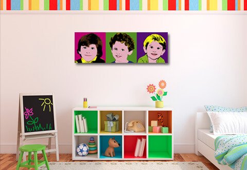 Con sólo una fotografía podrás tener en tu casa un retrato al estilo Warhol como el que tuvo en su día la célebre actriz Marilyn Monroe. Por muy poco dinero dispondrás de una imagen totalmente personalizada. Elige el tamaño y la composición y déjanos sorprenderte con tu estilo pop art preferido.